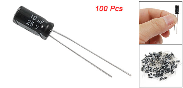 10uF 25V Radial Lead Aluminum Electrolytic Capacitors 100 Pcs
