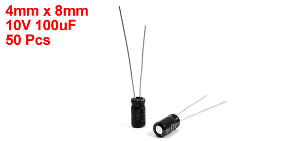 10V 100uF Cylindrical Soldering Pin Electrolytic Capacitor 4x8mm 50 Pcs