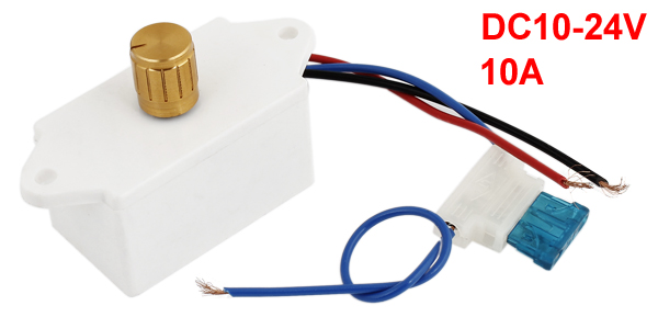 Product Name DC Motor Speed Control Switch Voltage DC10-24V Current 10A Overall Size 8 x3.3 x 5cm/3.1" x 1.3" x 2"(L*W*H) Material Metal, Aluminum, PCB Color White, Gold Tone Net Wieght 54g Package Content 1 x DC Motor Speed Control Switch - Reviews