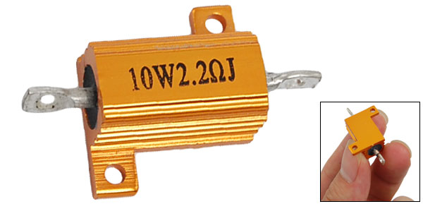 Product Name Aluminum Resistor Resistance Value 2.2 Ohm Power Rating 10W Resistance Tolerance ± 5% (J) Mounted Hole Diameter 0.2cm/ 0.078" Body Size 1.9 x 1cm/ 0.74" x 0.39" (L*D) Total Size 3.2 x 2.1 x 1cm/ 1.2" x 0.82" x 0.39" (L*W*H) Casing Material Aluminum Color Gold Tone Weight 5g Package Content 1 x Aluminum Wire Wound Resistor - Reviews