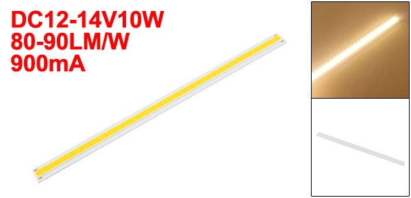 Product Name COB LED Lamp Beads Rated Voltage DC12-14V Luminous Flux 80-90LM/W Color Temperature 2800-3000K Power 10W Current 900mA Light Color Warm White Material Aluminum Color Silver Tone, Orange Size 200 x 12mm/ 7.8" x 0.5" (L*W) Luminous Surface 200 x 5mm/ 7.8" x 0.2"(L*W) Weight 10g Package Content 1 x COB LED Lamp Beads - Reviews