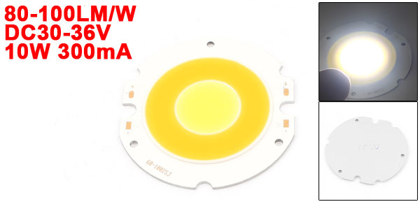 Product Name COB LED Lamp Beads Rated Voltage DC30-36V Luminous Flux 80-100LM/W Color Temperature 6000K/3000K Power 10W Current 300mA Light Color White, Warm White Material Aluminum Color Silver Tone, Yellow, Orange Size 40 x 35mm/ 1.6" x 1.4" (L*W) Luminous Surface 30 x 30mm/ 1.2" x 1.2"(L*W) Weight 12g Package Content 1 x COB LED Lamp Beads - Reviews