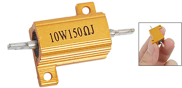 Product Name Aluminum Resistor Resistance Value 150 Ohm Power Rating 10W Resistance Tolerance ± 5% (J) Mounted Hole Diameter 0.2cm/ 0.078" Body Size 1.9 x 1cm/ 0.74" x 0.39" (L*D) Total Size 3.2 x 2.1 x 1cm/ 1.2" x 0.82" x 0.39" (L*W*H) Casing Material Aluminum Color Gold Tone Weight 5g Package Content 1 x Aluminum Wire Wound Resistor - Reviews