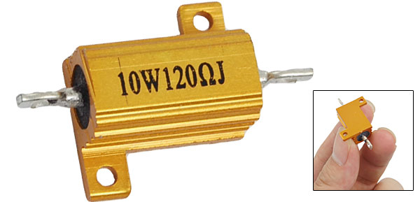 Product Name Aluminum Resistor Resistance Value 120 Ohm Power Rating 10W Resistance Tolerance ± 5% (J) Mounted Hole Diameter 0.2cm/ 0.078" Body Size 1.9 x 1cm/ 0.74" x 0.39" (L*D) Total Size 3.2 x 2.1 x 1cm/ 1.2" x 0.82" x 0.39" (L*W*H) Casing Material Aluminum Color Gold Tone Weight 5g Package Content 1 x Aluminum Wire Wound Resistor - Reviews