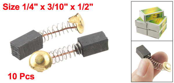 Product Name Carbon Brush Model No. 999021 Carbon Brush Size 6.5 x 7.5 x 13mm/ 1/4" x 3/10" x 1/2" (L*W*H) Total Length 40mm / 1.6'' (When Spring Stretching) Material Carbon, Metal Net Weight 15g Package Content 10 x Carbon Brush - Reviews
