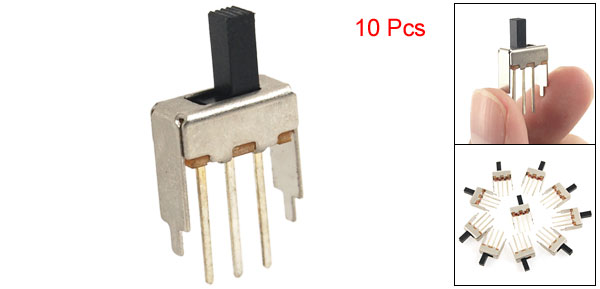Product Name Slide Switch Model SS12F41 Type Single Pole Double Throw(SPDT), 2 Position Terminal Quantity 3 Pcs Working Power 0.5A 50V DC Contact Resistance 30mΩ Max Insulation Resistance 100mΩ Min at 500V DC Withstand Voltage AC 500V for 1 min Terminal Size(Each One) 13 x 0.75mm / 0.5" x 0.03"( L * W) Pin Pitch 3mm / 0.12" Main Body Size(not include pins & knob) 12.3 x 5.5 x 5mm / 0.48" x 0.22" x 0.2"(L * W* H) Switch Total Size 12.3 x 5.5 x 24mm / 0.48" x 0.22" x 0.9"(L * W* H) Knob Size 3 x 3 x 7mm / 0.12" x 0.12" x 0.27"(L * W * H) Material(External) Plastic, Metal Main Color Silver Tone, Black Weight 15g Package Content 10 x Slide Switch - Reviews