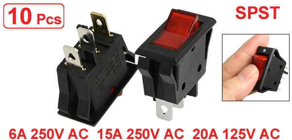 10x AC 15A/250V 20A/125V Red Light ON-OFF 2 Position SPST Snap In Rocker Switch