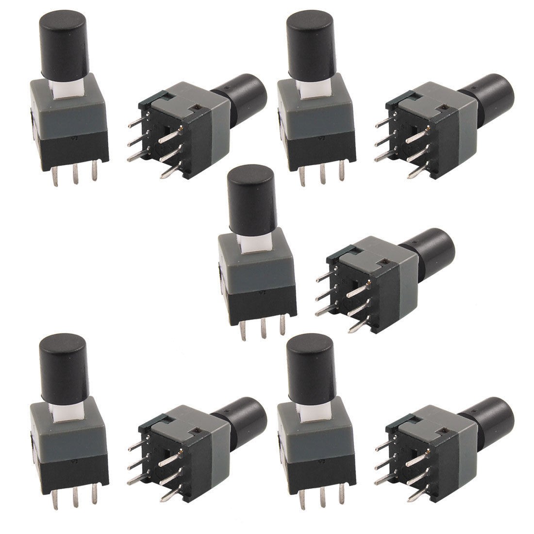 10x Panel PCB Self Lock Tactile Push Button Switch 8.5 x 8.5mm 6 Pin DIP w Cap