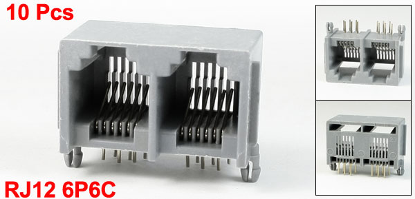 10X RJ12 6P6C 2 Way Computer Internet Network PCB Jack Socket Gray