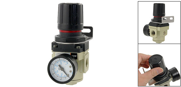 Product Name Pressure Regulator Model AR3000-03 Max. Pressure 1.0MPa ADJ.Range 0.05~0.85kgf/cm2 Working Media Air Joint Female Thread Dia 17mm/11/16" Gauge Thread Diameter 9mm/0.35'' Gauge Range 0~1 MPa, 0~10Kg/cm2 Gauge Accuracy 0.02 Mpa, 0.2kg/cm² Valve Total Size 12.8 x 5 x 5cm/5'' x 1.97'' x 1.97''(L*W*H) Pressure Guage Size 4.1 x 3.7cm/1.6'' x 1.46''(D*H) Stand Size 6.3 x 5 x 2cm/2.5'' x 1.97'' x 0.8'' (L*W*H) External Material Metal, Plastic Color Red, Black, Silver Tone Total Weight 451g Package Content 1 x Pressure Regulator