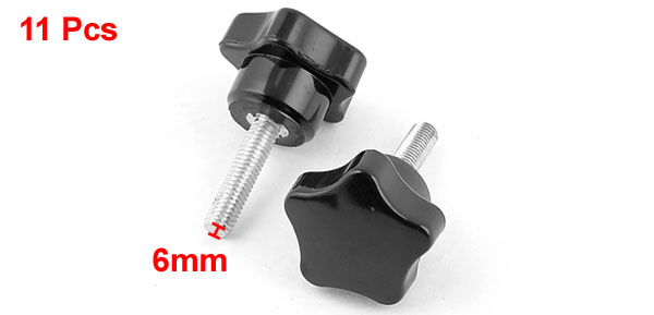 11 Pcs 32mm Star Head Dia M6 x 25mm Male Thread Screw On Type Clamping Knob