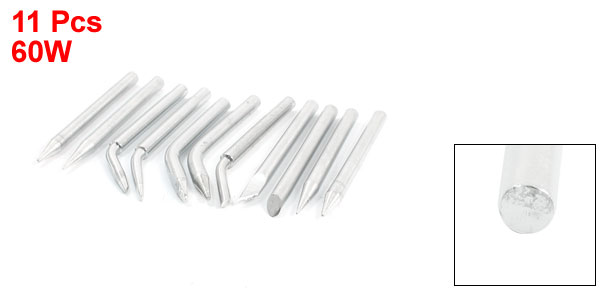 11 Pcs 60W Metal Slotted Point 45 Degree Bevel Tip Soldering Iron Horn