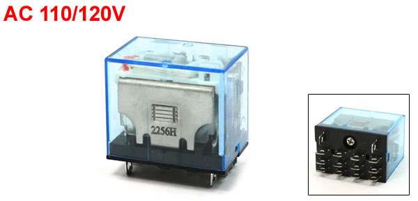 Product Name Electromagnetic Relay Model No. LY4N-J Coil Voltage 110/120VAC Type 4PDT Pin Quantities 14 Indicator Light Color Red Overall Size (Approx.) 4 x 4 x 2.7cm/1.6" x 1.6“ x 1.1"(L*W*H) Shell Material Plastic, Metal Main Color Clear Blue, Black Net Weight 63g Package Content 1 x Electromagnetic Relay - Reviews