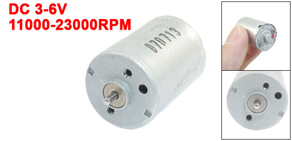 Product Name DC Motor Rated Voltage DC 3-6V Speed 11000-23000RPM Mounting Screw Hole Diameter 1.5mm/0.06" Screw Hole Center Distance 10mm/0.4" Shaft Size 1.5 x 2mm/ 0.06" x 0.08"(D*L) Body Size 17 x 23mm/ 0.7" x 0.9" (D*H) Main Color Silver Tone Material Metal Net Weight 19g Package 1 x DC Motor - Reviews