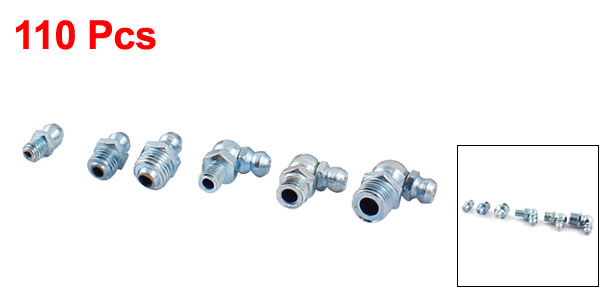 110Pcs M6 M8 M10 90 180 Degree Metal Grease Nipple Assortment Set