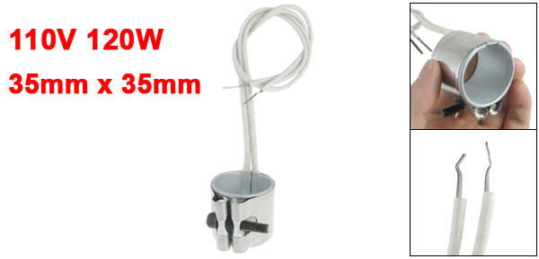 Product Name Band Heater Main Material Stainless Steel, Mica Power 120W Voltage 110V Cable Length 360mm/14.2'' Size 35 x 35mm/1.4'' x 1.4'' (ID*H) Color White, Silver Tone Net Weight 73g Package Content 1 x Band Heater - Reviews