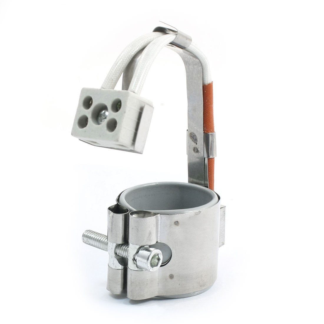 Details110V 300Watt 35mm x 35mm Screw Fixing Flexible Mica Insulated Band Heater  Product Name Band Heater Rated Power 300W Rated Voltage 110V Screw Dia 5.5mm/0.22", 3.5mm/0.13" Dimension 35 x 35mm/ 1.4" x 1.4" (Inner Dia*H) Total Length 160mm/ 6.3" Material Metal , Mica, Nylon Color White, Silver Tone Net Weight 90g Package Content 1 x Band Heater