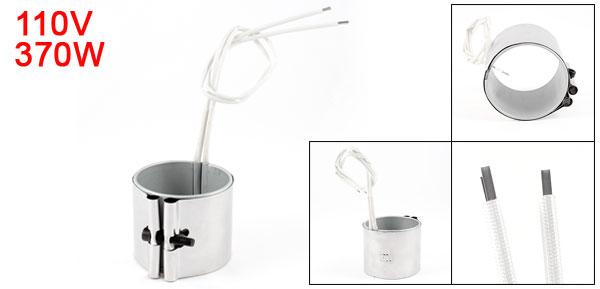 Product Name Band Heater Material Metal Power 370W Voltage 110V Band Size 65 x 60 mm/ 2.5" x 2.3"(Inside Dia.*H) Braid Lead Length (Each) 32cm / 12.5" Color White, Silver Tone Net Weight 177g Package Content 1 x Band Heater - Reviews