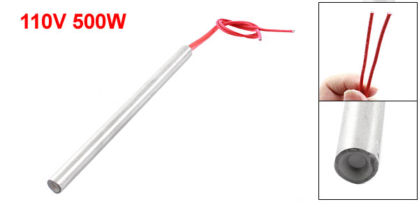 Product Name Cartridge Heater Rated Voltage 110V Power 500W Heater Size (Approx.) 12 x 190mm / 0.47" x 7.5" (D * L) Wire Length (Approx.) 26.5m /10.4" Material Metal, PVC Color Red, Silver Tone Weight 95g Package Content 1 x Cartridge Heater - Reviews