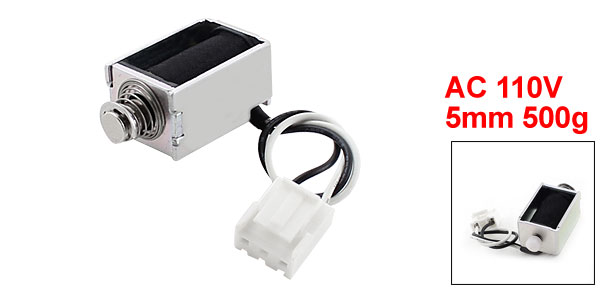 110V 5mm Stroke 500g Force Push Pull Type Open Frame AC Solenoid Electromagnet