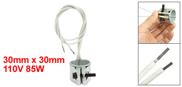 Product Name Band Heater Material Iron Sheet, Mica Power 85W Voltage 110V Band Size 30 x 30mm / 1.2" x 1.2" (Inside Dia.*H) Braid Lead Length (Each) 35cm / 13.8" Color White, Silver Tone Net Weight 61g Package Content 1 x Band Heater - Reviews