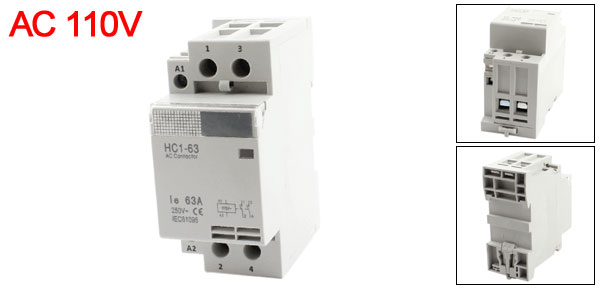 Product Name AC Contactor Model HC1-63 Rated Coil Voltage AC 110V Rated Current 63A Ue 250V Number of Poles 2 Mounting Type 35mm DIN Rail Mount Overall Size(Approx.) 82 x 36 x 62mm / 3.4" x 1.4" x 2.4"(L*W*T) Material Plastic, Electronic Parts Color Gray Net Weight 225g Package Content 1 x AC Contactor - Reviews