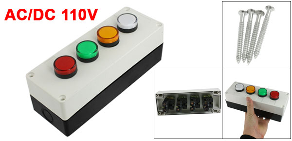 Product Name LED Signal Indicator Lamp Material Plastic, Metal Lamp Voltage(each) AC/DC 110V Button Dia 2.8cm / 1.1" Box Size (Approx.) 19.4 x 7 x 6.4cm / 7.6" x 2.7" x 2.5" (L * W *T) Mounting Screw Hole Diameter (Approx.) 5mm / 0.19" Color White, Black, Yellow, Green, Red Weight 249g Package Content 1 x LED Signal Indicator Lamp - Reviews