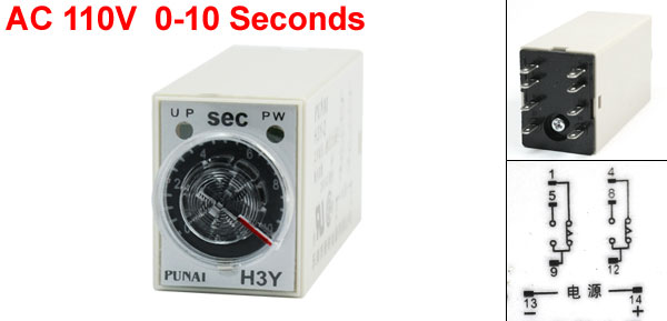 110VAC DPDT 0-10s Seconds Timing Range Timer Relay H3Y-2 8 Terminal