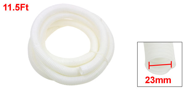11.5Ft 25mm Outer Dia White Plastic Flexible Corrugated Hose Tube Pipe