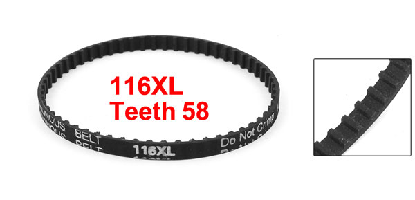 Product Name Timing Belt Model 116XL Number of Teeth 58 Code Number 025 Teeth Pitch 5.08mm / 0.2" Belt Width 6.4mm / 0.25" Belt Girth 294.64mm/ 11.6" Material Rubber Color Black Weight 6g Package Content 1 x Timing Belt - Reviews