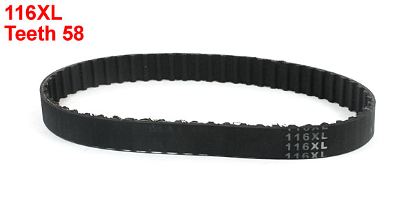 Product Name Timing Belt Model 116XL Number of Teeth 58 Teeth Pitch 5.08mm / 0.2" Belt Width 10mm / 0.4" Belt Girth 294.64mm/ 11.6" Material Rubber Color Black Weight 10g Package Content 1 x Timing Belt - Reviews