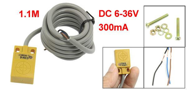 Size 30 x 17 x 9mm / 1.2" x 0.67" x 0.35"(L*W*T) Cable Length 1.1M / 43" Extenal Material ABS Resin Color Yellow, Black Net Weight 36g Package Content 1 x Proximity Switch