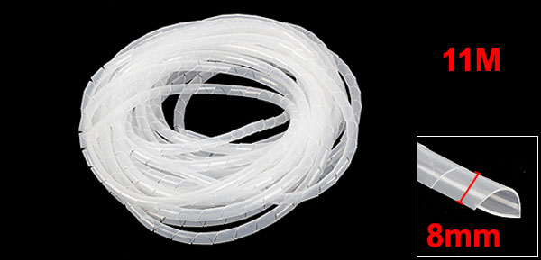 11M Long Flexible White PE Polyethylene Spiral Cable Wire Wrap Tube 8mm