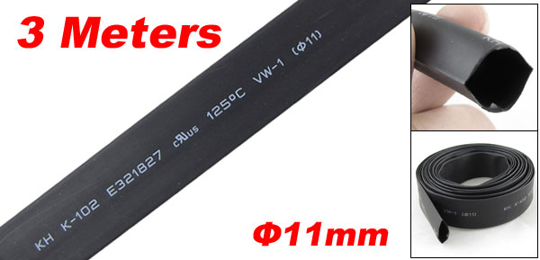 11mm Black Heat Shrinkable Tube Shrink Tubing 3 Meter 9.8FT