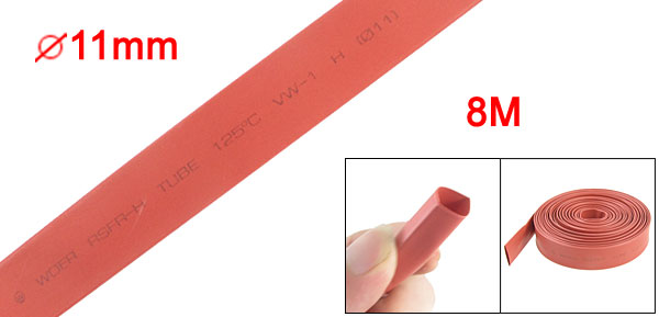 11mm Dia. Heat Shrinkable Tube Shrink Tubing 8M 26.2FT Red