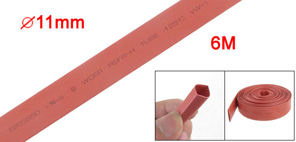 11mm Dia. Heat Shrinkable Tube Shrink Tubing Red 6M 19.7ft