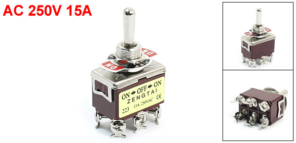 11mm Panel Mount DPDT ON/OFF/ON 3 Position Toggle Switch AC 250V 15A E-TEN223