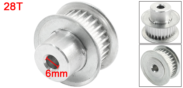 Product Name Timing Pulley Tooth Number 28T Pitch 3mm /0.12" Bore Diameter 6mm /0.24" Bore Outside Diameter 17mm / 0.67" Fit Belt Width 11 mm /0.43" Overall Size 32 x 26mm / 1.3" x 1" (D*H) Material Aluminum Alloy Color Silver Tone Weight 31g Package Content 1 x Timing Pulley - Reviews