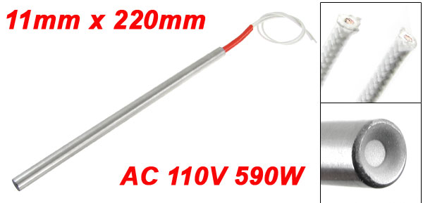 Product Name Cartridge Heater Material Stainless Steel, PVC, Nylon Rated Voltage AC 110V Power 590W Heater Size (Approx.) 11 x 220mm/0.4'' x 8.7'' (D * L)