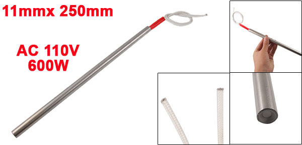 Product Name Cartridge Heater Material Stainless Steel, PVC, Nylon Rated Voltage AC 110V Power 600W Heater Size (Approx.) 11 x 250mm/ 0.43" x 9.8" (D * L) Wire Length (Approx.) 26cm/ 10.2" Color Red, Silver Tone Weight 102g Package Content 1 x Cartridge Heater - Reviews