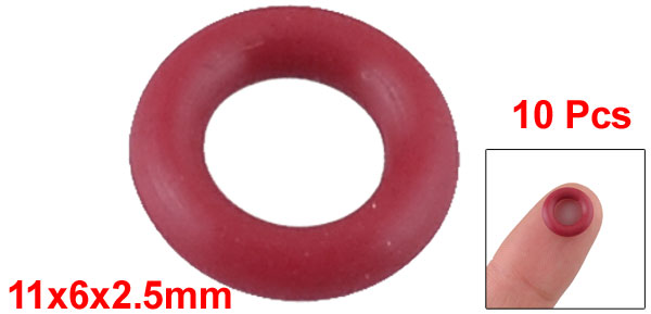 11mm x 6mm x 2.5mm Red Rubber O Shaped Rings Oil Seal Gasket Washer 10 Pcs