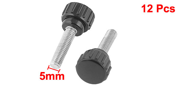 Product Name Knurled Knob Type Screw On Head Diameter 15mm / 0.6" Thread Length 20mm / 0.8" Thread Diameter 5mm / 0.2"(M5) Total Height 31mm / 1.2" Material Metal, Plastic Color Silver Tone, Black Weight 69g Package Content 12 x Knurled Knob - Reviews