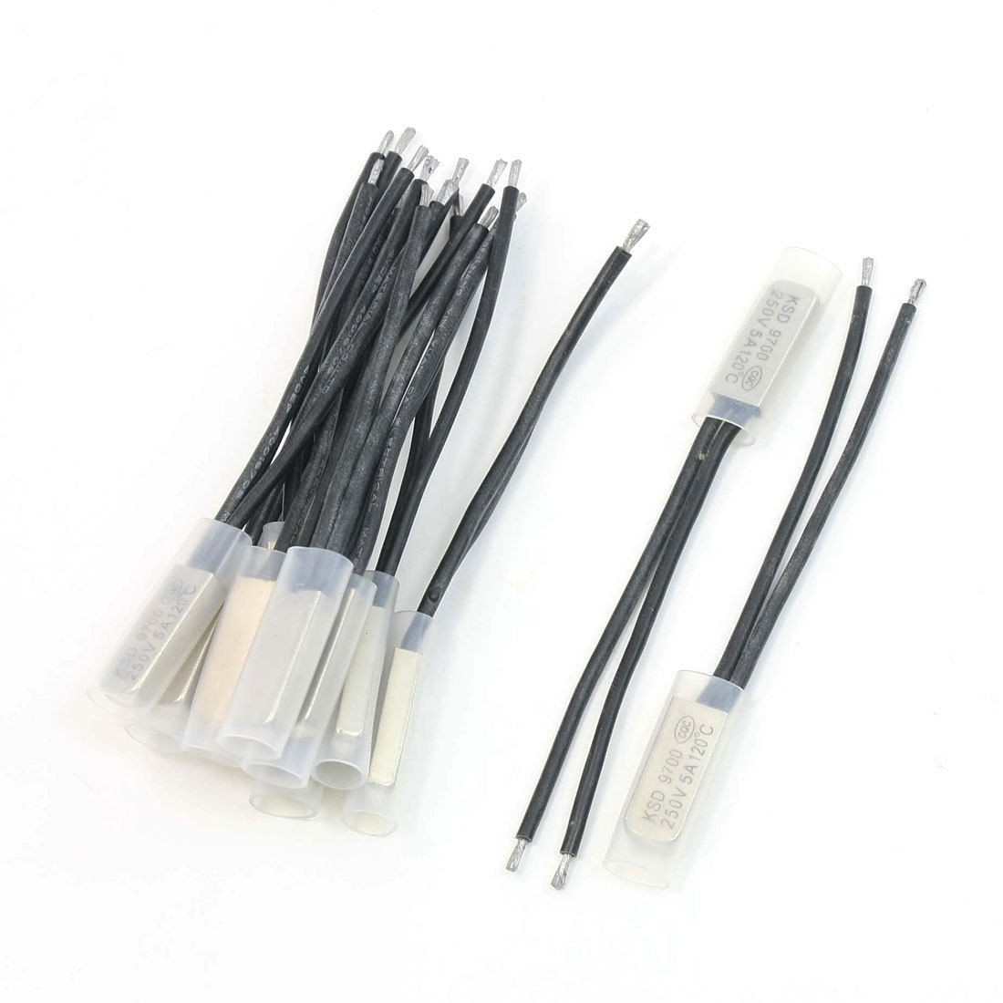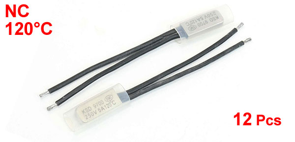 Product Name Temperature Switch Model.No KSD9700 Material Bimetal ,Plastic,Stainless Steel Contact NC(Normal Close) Rated Power 250V 5A Active Temperature 120°C Lead Wire Length 7cm / 2.8" Head Dimension 20 x 8 x 3mm/0.78" x 0.31" x 0.12"(L*W*T) Net Weight 21g Package Content 12 x Temperature Switch - Reviews