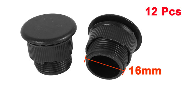12 Pcs Black Plastic Push Button Switch 16mm Mount Hole Panel Plug Cap