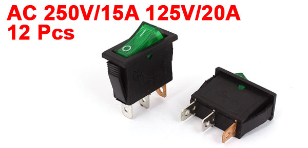 12 Pcs KCD-104 SPST ON-OFF Green LED Boat Rocker Switch AC 250V/15A 125V/20A