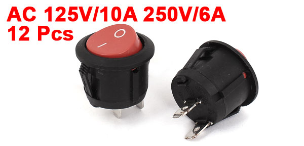 12 Pcs KCD-107 ON-OFF Snap Round Boat Rocker Switch Red AC 125V/10A 250V/6A