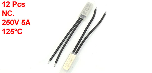 12 Pcs NC 125C 2 Wire Connector Bimetal Thermal Thermostat Switch 250V 5A
