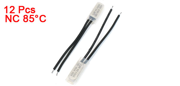 12 Pcs NC 85C 2 Wire Connector Bimetal Thermal Thermostat Switch 250V 5A