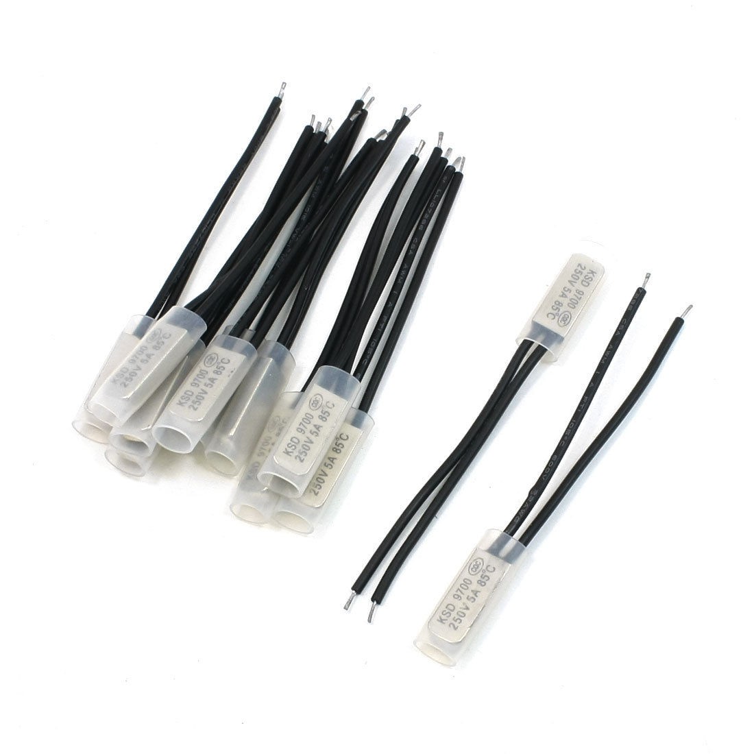 Rated Power 250V 5A Active Temperature 85°C Lead Wire Length 7.3cm / 2.9" Head Dimension 20 x 7.5 x 3.5mm/0.78" x 0.3" x 0.14"(L*W*T) Material Bimetal ,Plastic,Stainless Steel Main Color Silver Tone, Black Net Weight 38g Package Content 12PCS x Temperature Control Switch - Reviews