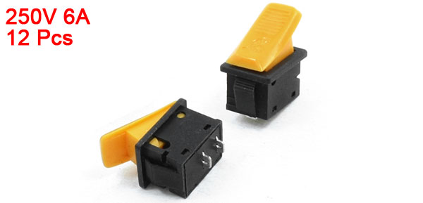 Product Name Rocker Switch Poles SPST Terminals 2 Pin Rating Voltage 250V 6A Total Size(Each One) 21 x 15 x 27mm/ 0.83" x 0.59" x 1.1"(L*W*T) Mounting Size 19 x 12mm/ 0.75" x 0.47"(L*W) Color Black, Yellow Material Plastic, Metal Weight 44g Package Content 12 x Rocker Switches - Reviews